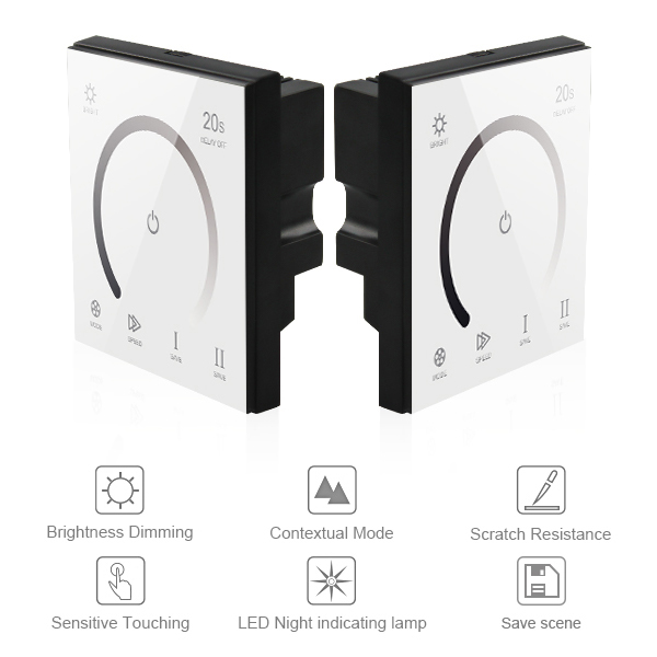Ideal for controlling LED strip lights in various settings. Its sleek design allows for easy installation on walls. It can be used in bedrooms, living rooms, or entertainment areas to create ambient lighting and adjust brightness levels with a simple touch. The dimmer panel is also suitable for commercial spaces such as restaurants, bars, or retail stores, where customizable lighting can enhance the atmosphere. With its user-friendly interface and compact size, the touch dimmer is a versatile solution for achieving desired lighting effects in any environment.
